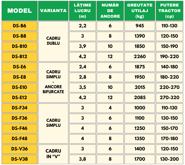 • Toate modelele sunt prevăzute cu dispozitiv de siguranță cu șuruburi de fixare a brăzdarului, instalat inițial (cu opțiunea de a schimba la sistemul hidraulic, la nevoie). În cazul apariției bruște a unui obstacol, sistemul de siguranță intră în acțiune și previne deteriorarea tractorului și a șasiului