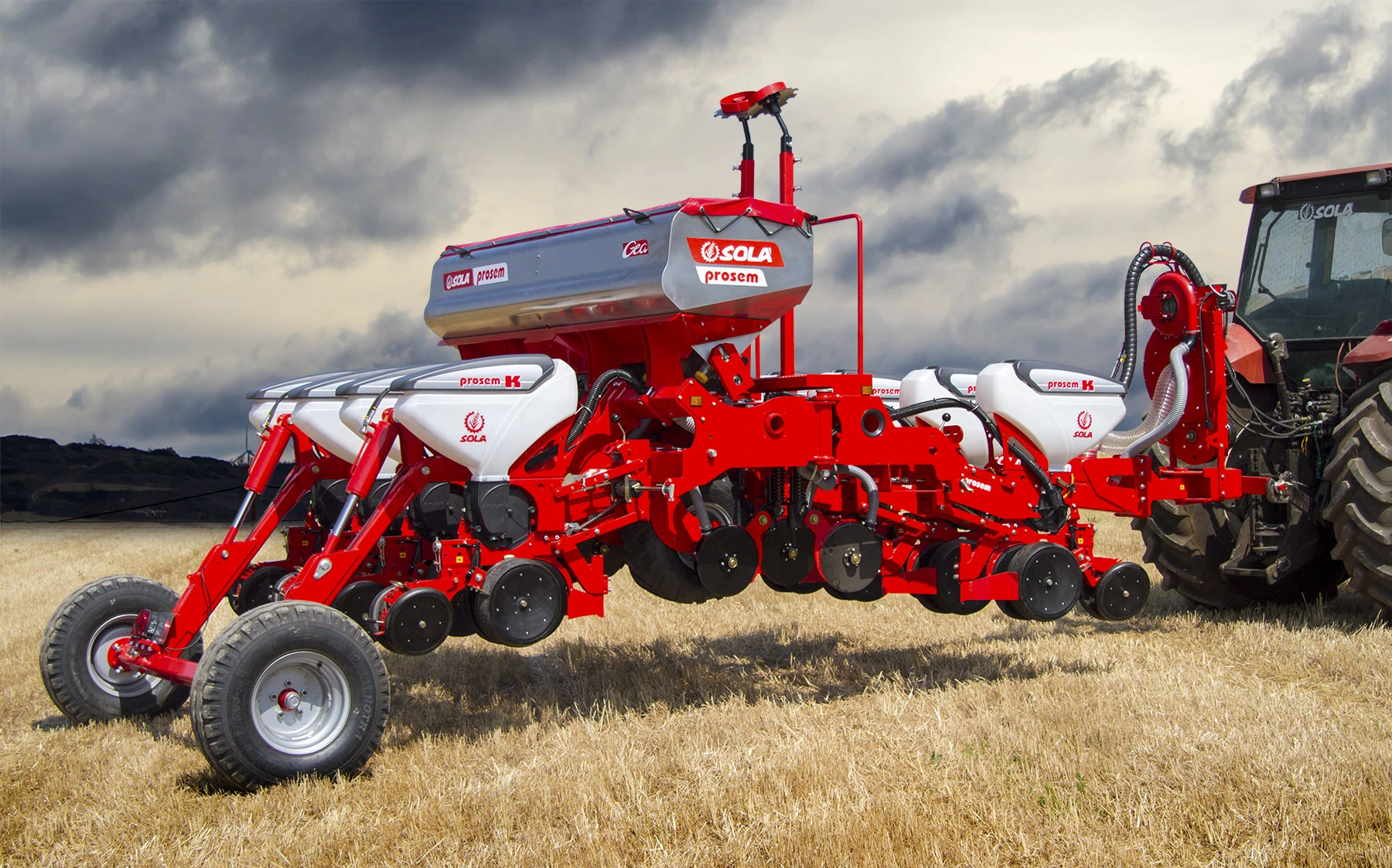 • Prosem GEA este o mașină versatilă și puternică. Sistemul de transport inovator cu cadru pliabil hidraulic permite rularea pe drumuri publice având doar 3 m lățime în transport, și atinge 5,25