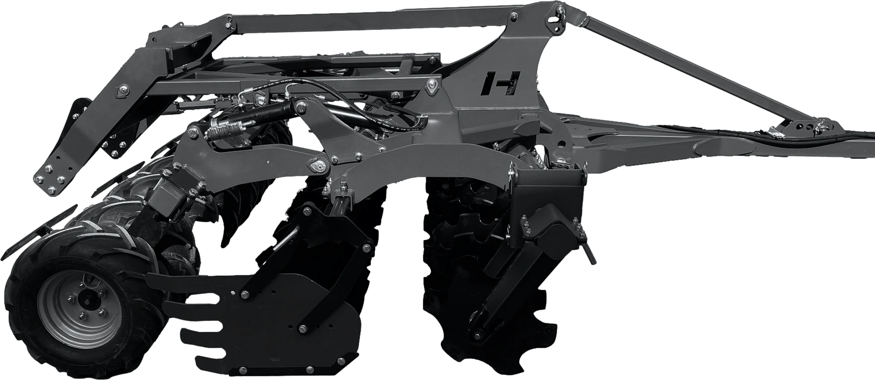 1. Utilajul combină două rânduri de discuri pentru tăierea și amestecarea resturilor vegetale cu un sistem care permite atașarea unei semănători (sau pregătirea perfectă pentru aceasta).