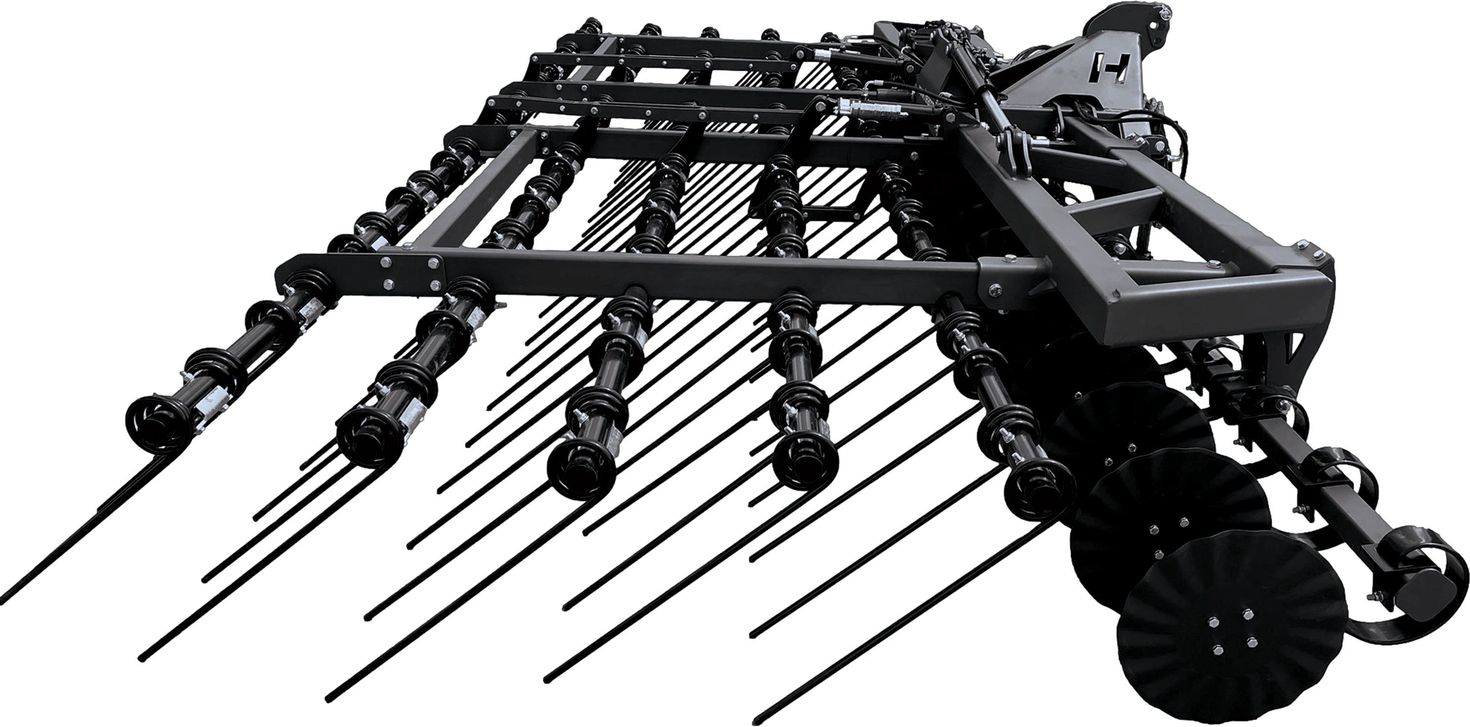 4. Control total: Unghiul de atac al dinților se reglează hidraulic direct din cabina tractorului, în funcție de cantitatea de resturi de pe câmp.