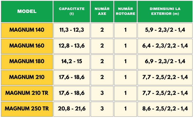 • Arbore cardanic 540/1000 rpm (in functie de baterii cu melc)